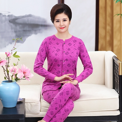 Bông mở trung và cũ tuổi đồ lót nhiệt đặt mẹ nạp phụ nữ bông kích thước lớn cardigan mùa thu quần áo quần dài Phù hợp với nóng lên