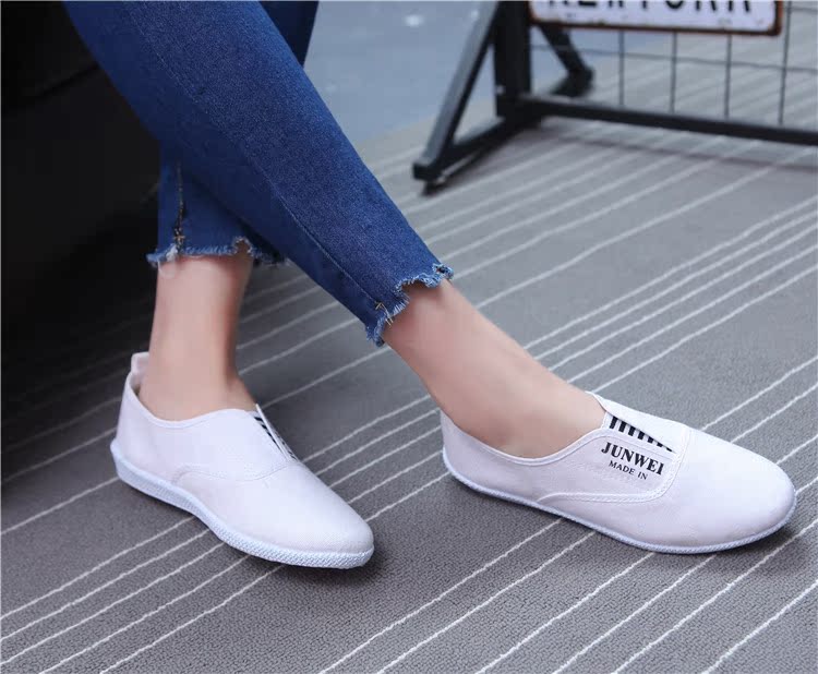 Đặc biệt cung cấp JUNWEI mùa hè đích thực phong cách Tháng Sáu Wei nhỏ màu trắng giày thấp để giúp phụ nữ phẳng giày thường giày vải giày đơn giày trắng Plimsolls