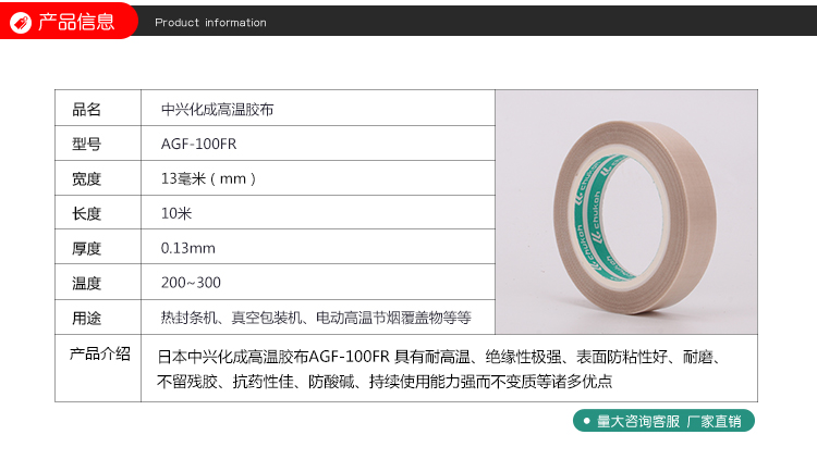 AGF-100FR Băng Teflon Băng niêm phong Máy chịu nhiệt độ cao 0,13MM * 13MM * 10M - Băng keo Băng keo