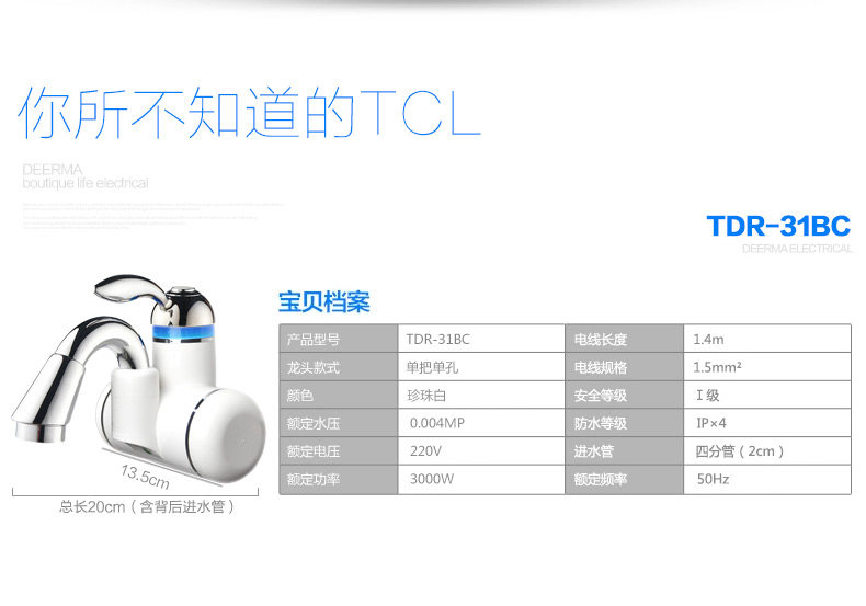 ariston 30l TCL TDR-31BC ngay lập tức vòi bếp điện nhanh chóng sưởi ấm nước nóng bên nước nhà bếp nhỏ kho báu - Máy đun nước bảo hành bình nóng lạnh aristonc Máy đun nước