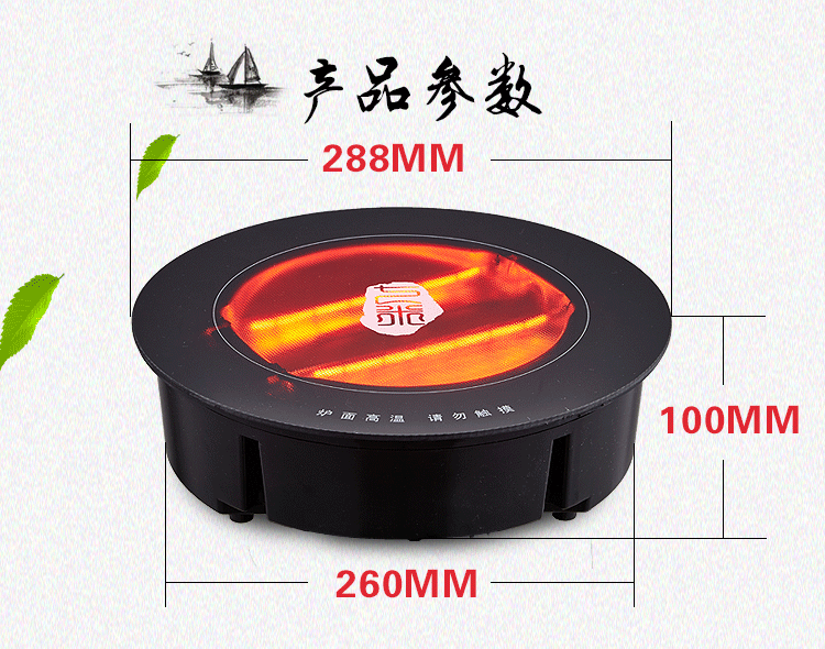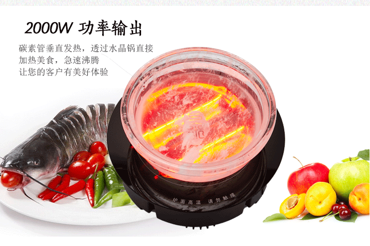 bếp đôi điện từ hồng ngoại Nhà hàng lẩu pha lê thương mại bảy mét đặc biệt lẩu lò đối lưu lò điện gốm tròn 288mm nhúng 2000W bếp từ fandi Bếp điện