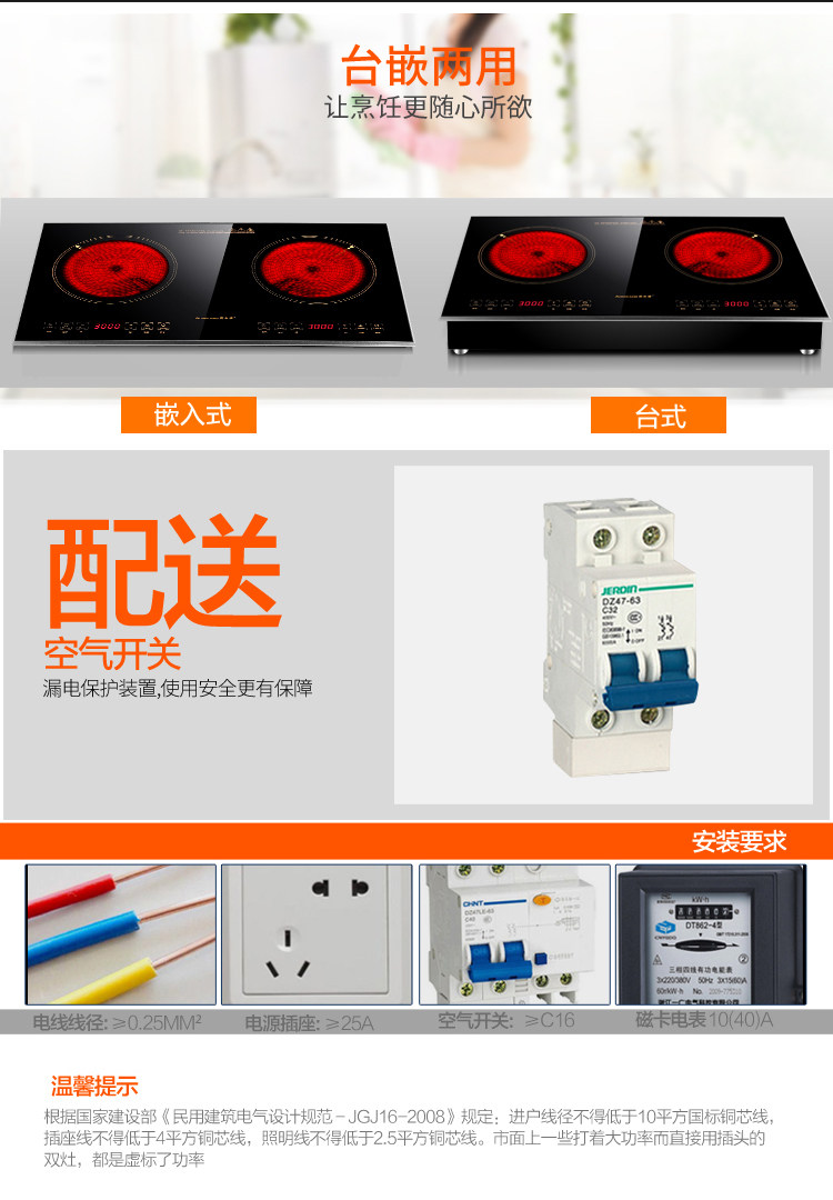 bếp nướng sunhouse shd4607 Bếp gốm Omega Kang nhúng đôi mắt hai đầu bếp công suất cao 6KW để bàn thương mại không có bức xạ điện từ bếp điện từ và bếp hồng ngoại Bếp điện