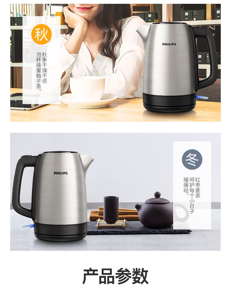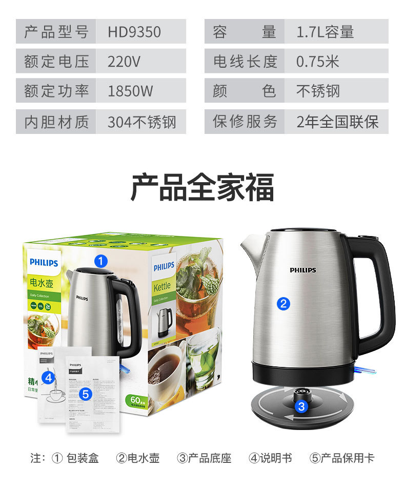 bình đun nước Ấm đun nước điện Philips / Philips HD9350 gia đình bằng thép không gỉ 304 chính hãng tự động tắt nguồn bình đun nước nóng mini ấm đun nước điện