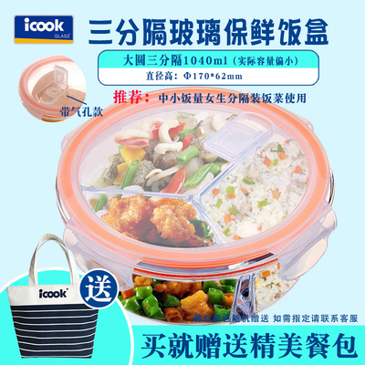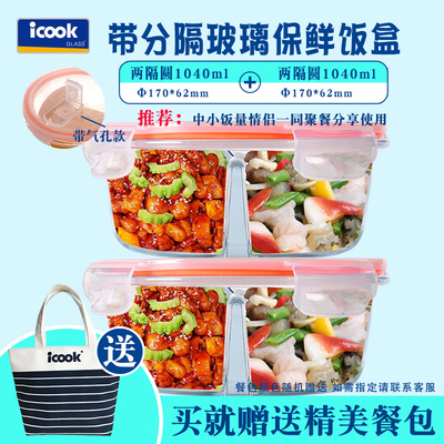 cặp lồng điện Vòng iCooK với 3 hộp ăn trưa bằng kính riêng biệt lò vi sóng Hộp lưu trữ đặc biệt 2 ngăn đựng bát ăn trưa - Hộp cơm điện sưởi ấm lock and lock hộp cơm Hộp cơm điện sưởi ấm
