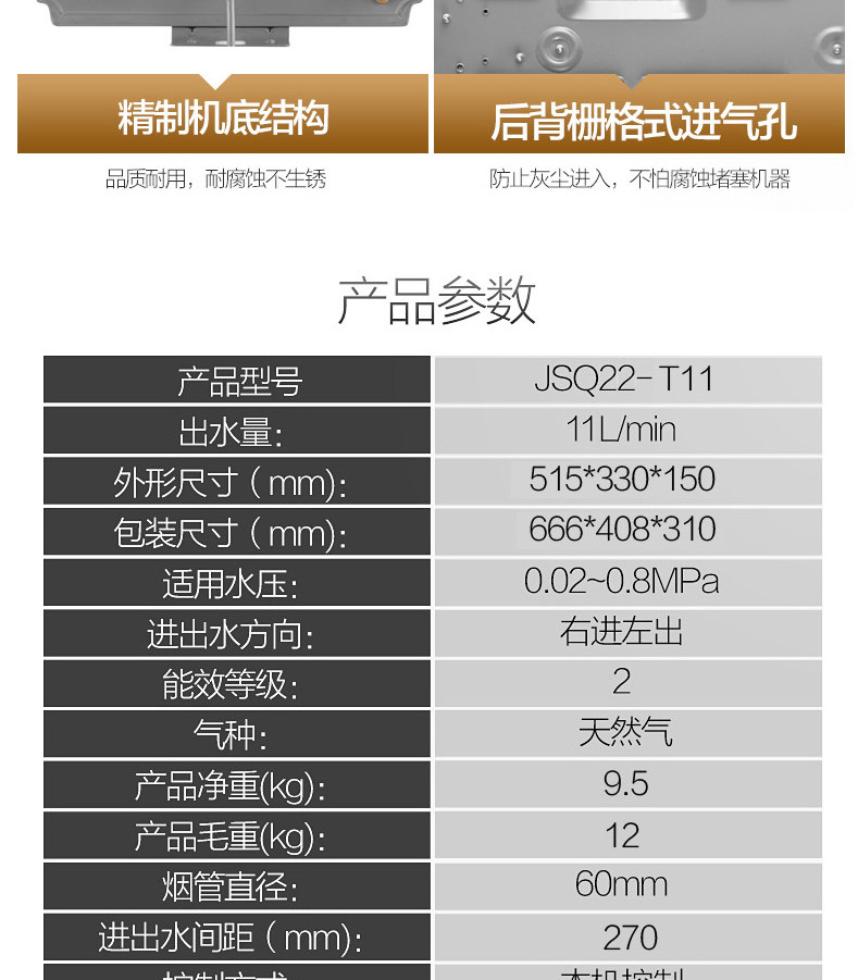 chống giật bình nóng lạnh Máy nước nóng khí tự nhiên Macro Wanjiale JSQ22-T11 hộ gia đình điện nhiệt độ không đổi 11 lít khí hóa lỏng - Máy đun nước bình nóng lạnh gas Máy đun nước