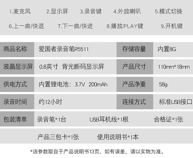 củ phát wifi 2 râu Máy ghi âm Aigo / Patriot R5511 Chuyên nghiệp Giảm khoảng cách tiếng ồn HD Máy nghe nhạc MP3 - Trình phát TV thông minh máy chiếu 4k Trình phát TV thông minh