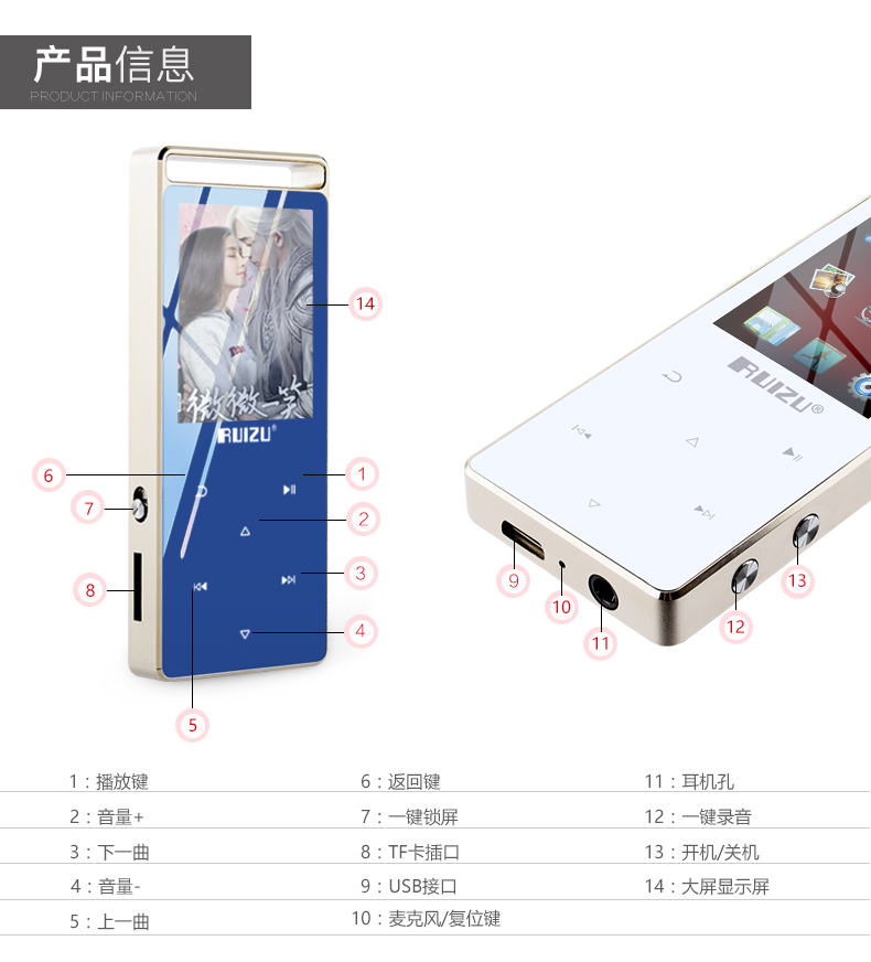 củ phát wifi sim 4g RUIZU Rui D01mp3mp4 Trình phát nhạc sinh viên Bluetooth Walkman màn hình cảm ứng nhỏ ghi âm siêu mỏng bút thể thao cầm tay thẻ tiếng Anh p3 dễ thương p4 đọc tiểu thuyết sách điện tử - Trình phát TV thông minh cục phát wifi Trình phát TV thông minh