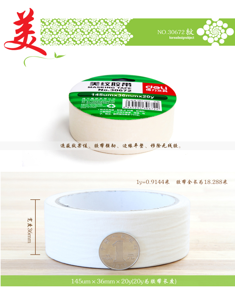 Deli 30672 băng giấy kết cấu Dễ xé Trang trí nhà văn phòng Bảo vệ sơn 1 Gói 36mm - Băng keo Băng keo