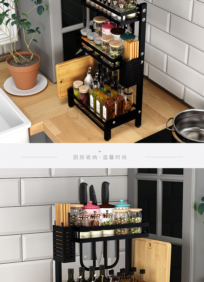 đèn led sáng nhấp nháy Thép không gỉ giá bếp sàn màu đen nhiều lớp công cụ lưu trữ gia vị vật tư thiết bị nhỏ - Thiết bị sân khấu đèn led dây nháy theo nhạc Thiết bị sân khấu