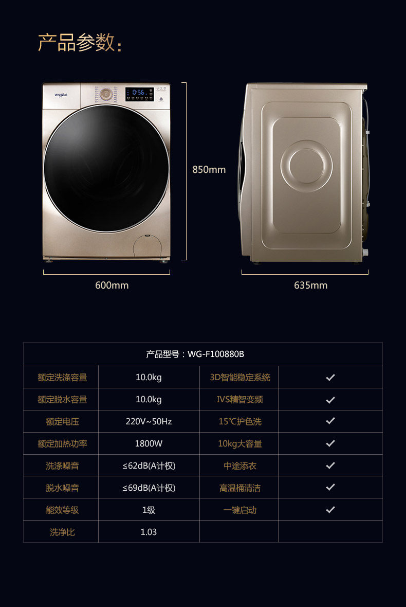 giá máy giặt panasonic 10kg Whirlpool tự động công suất lớn chuyển đổi tần số hộ gia đình 10kg máy giặt trống led màn hình cảm ứng WG-F100880B - May giặt giá máy giặt sấy khô không cần phơi May giặt