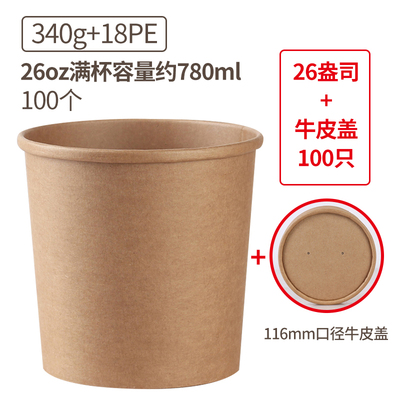 hộp cơm cắm điện lock and lock Giấy kraft dày súp xô dùng một lần bát súp đóng gói hộp tròn hộp ăn trưa tráng miệng bát cháo có nắp 100 - Hộp cơm điện sưởi ấm hộp cơm giữ nhiệt cắm điện Hộp cơm điện sưởi ấm