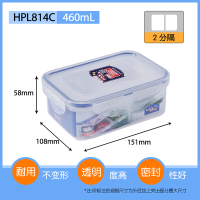 hộp cơm cắm điện unold Khóa và khóa hộp lưu trữ bằng nhựa 2 ngăn cách ly 460ML hộp cơm trưa kín hộp cơm trưa HPL814C - Hộp cơm điện sưởi ấm hộp cơm điện giá rẻ
