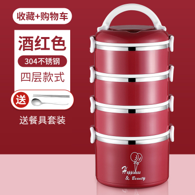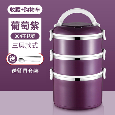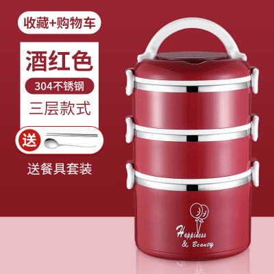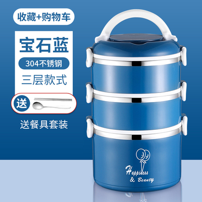 hộp cơm điện chefman Hộp cơm trưa cách nhiệt 304 thép không gỉ ba lớp hộp cơm trưa sinh viên siêu dài cách nhiệt thùng hộ gia đình nồi nhiều lớp dung tích lớn - Hộp cơm điện sưởi ấm hộp cơm cắm điện chefman Hộp cơm điện sưởi ấm