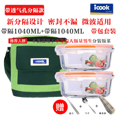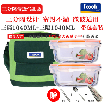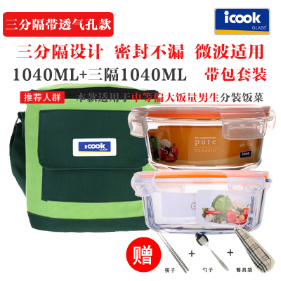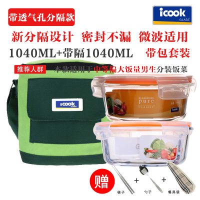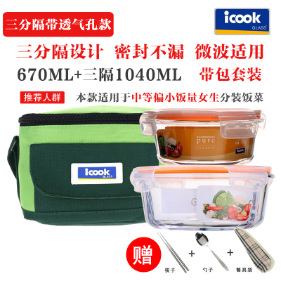 hộp cơm điện lock&lock ejr226ivy (2 lít) Vòng iCooK với 3 hộp ăn trưa bằng kính chịu nhiệt Hộp đựng lò vi sóng Bát ăn trưa chia 2 ngăn với bộ túi - Hộp cơm điện sưởi ấm hộp cơm hâm nóng lock&lock Hộp cơm điện sưởi ấm