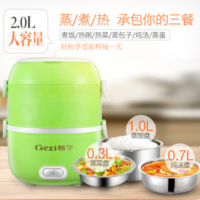 hộp cơm điện lock&lock ejr226ivy Kẻ sọc hộp cơm trưa bằng thép không gỉ 304 lót 1-2 người có cách nhiệt cách nhiệt hộp ăn trưa 2L cắm hộp ăn trưa điện tử - Hộp cơm điện sưởi ấm cà mèn hâm điện Hộp cơm điện sưởi ấm