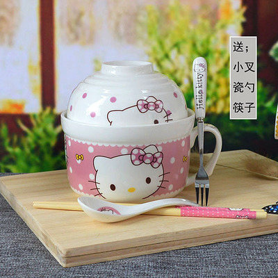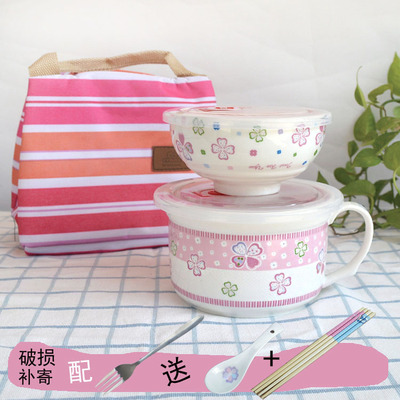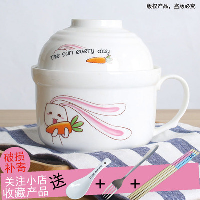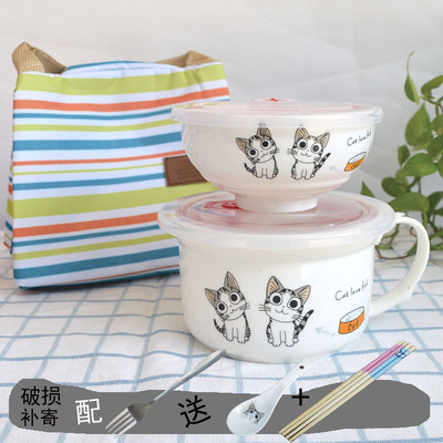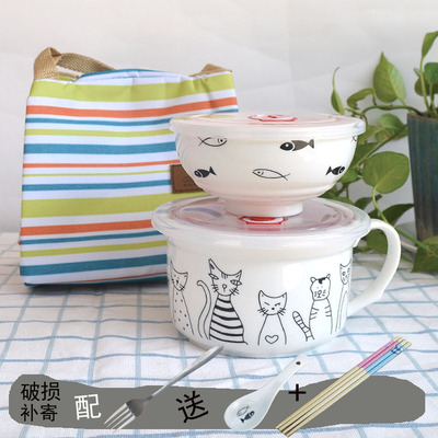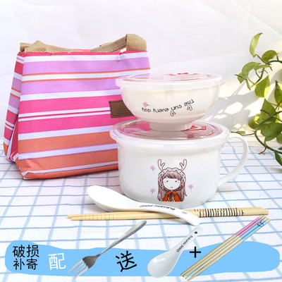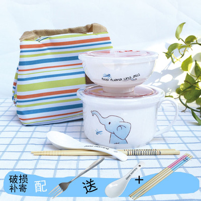 hộp cơm giữ nhiệt cắm điện Phim hoạt hình cốc cốc ăn liền gốm có nắp lớn học sinh dao kéo đặt hộp cơm trưa dễ thương ký túc xá bát đũa đũa nĩa - Hộp cơm điện sưởi ấm hộp cơm hâm nóng bằng điện Hộp cơm điện sưởi ấm