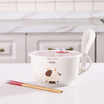 hộp cơm giữ nhiệt hàn quốc Pink Leopard Bát gốm sứ gia đình Bát tươi có nắp lò vi sóng Hộp cơm trưa Sinh viên dễ thương Bộ mì ăn liền dễ thương - Hộp cơm điện sưởi ấm hộp thức ăn giữ nhiệt Hộp cơm điện sưởi ấm