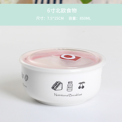 hộp com giữ nhiệt lock&lock tiki Bát sứ tươi bát sứ có nắp lò vi sóng hộp ăn trưa ký túc xá bát nhỏ dễ thương bát sinh viên có thể lò vi sóng - Hộp cơm điện sưởi ấm hộp cơm điện inox Hộp cơm điện sưởi ấm