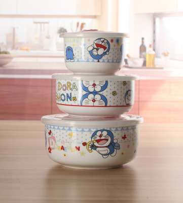hộp cơm hâm nóng bằng điện Sáng tạo Doraemon Gốm sứ Lò vi sóng Hộp ăn trưa đặc biệt Bát tươi Mì ăn liền Cup Cartoon Soup Bát Con dấu Cover Hộ gia đình - Hộp cơm điện sưởi ấm hộp cơm điện cầm tay Hộp cơm điện sưởi ấm
