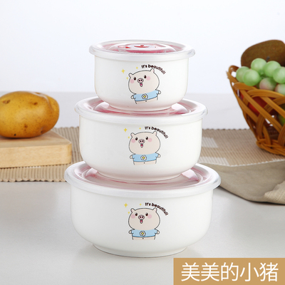 hộp cơm tự hâm nóng Gốm tươi bát ba mảnh hộp vi sóng ăn trưa có nắp tủ lạnh hộp kín hộp trái cây lớn bát ăn liền tùy chỉnh - Hộp cơm điện sưởi ấm hộp cơm văn phòng giữ nhiệt