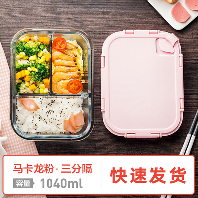 hộp đựng cơm hâm nóng Sinh học ba hộp ăn trưa thủy tinh riêng biệt lò vi sóng hộp ăn trưa chịu nhiệt đặc biệt bát kín 3 hộp lưu trữ lưới - Hộp cơm điện sưởi ấm bộ hộp cơm giữ nhiệt lock&lock easy carry 2l lhc8039