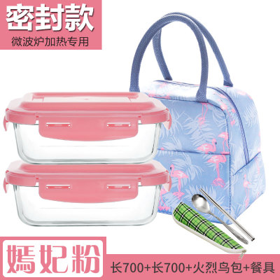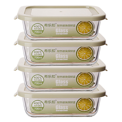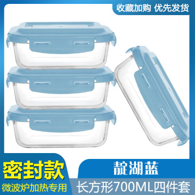 hộp đựng cơm lock&lock [Bốn 19.9] Hộp cơm trưa Lò vi sóng Bát thủy tinh có nắp Tủ lạnh Hình chữ nhật Hộp cơm trưa Hộp Bento tròn - Hộp cơm điện sưởi ấm hộp cơm hâm nóng lock&lock Hộp cơm điện sưởi ấm