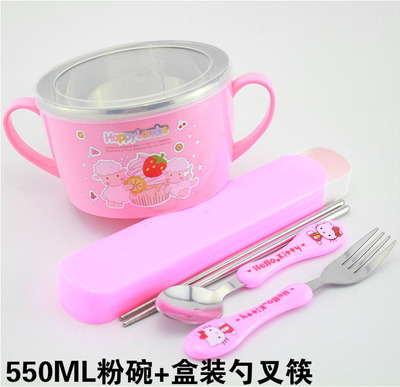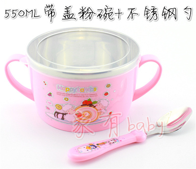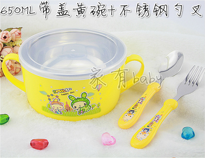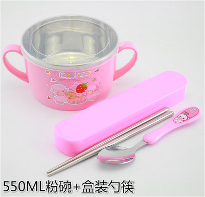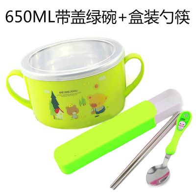 hộp hâm nóng thức ăn Trẻ em inox hai tai bát học sinh hoạt hình bát cơm bát bát hộp ăn trưa cho bé thực phẩm bổ sung bát có nắp tay cầm bát - Hộp cơm điện sưởi ấm hộp cơm hâm nóng chefman Hộp cơm điện sưởi ấm