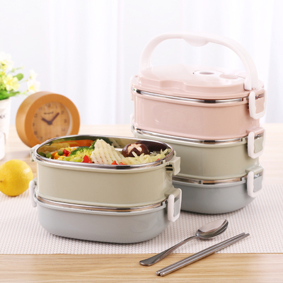 hộp thức ăn giữ nhiệt Thép không gỉ 304 nhiều lớp cách nhiệt hộp ăn trưa học sinh hộp ăn trưa hộp 2/3 hai lớp hình chữ nhật có nắp căng tin đơn giản - Hộp cơm điện sưởi ấm hộp cơm xiaomi Hộp cơm điện sưởi ấm
