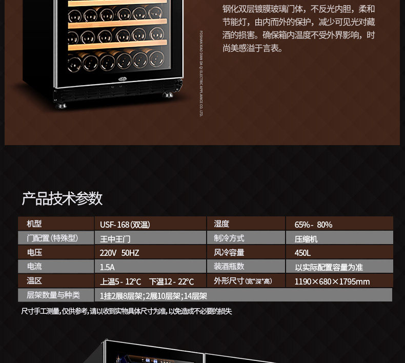 kệ rượu bằng sắt Fasato Van Sadie XD168 đôi nhiệt độ mở cửa phòng khách tủ rượu kệ đựng rượu treo tường Tủ rượu vang