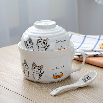lock and lock hộp cơm Căng tin hoạt hình bát phở ăn liền với nắp phở ngay lập tức bát súp có tay cầm lớn đựng đồ ăn trưa cho học sinh để gửi đũa đũa - Hộp cơm điện sưởi ấm nên mua hộp cơm giữ nhiệt hay cắm điện Hộp cơm điện sưởi ấm