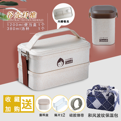 lock and lock hộp cơm giữ nhiệt Lúa mì rơm hộp vi sóng xanh đặc biệt hai lớp hộp cơm trưa cầm tay Nhật Bản - Hộp cơm điện sưởi ấm cà mèn giữ nhiệt lock&lock Hộp cơm điện sưởi ấm
