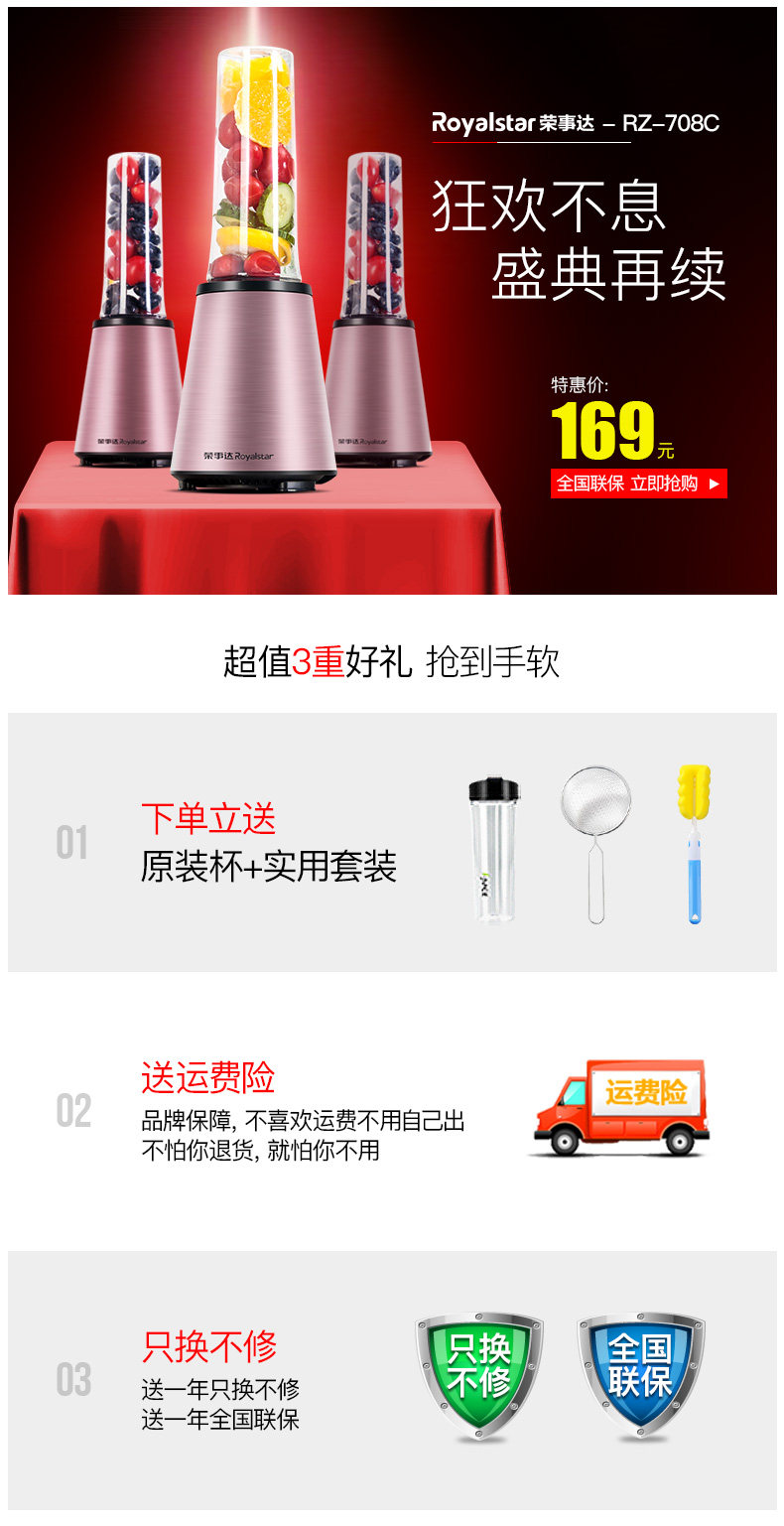 máy ép chậm mishio Máy ép trái cây cầm tay Royalstar / Rongshida RZ-708C mini nhà đa năng máy xay sinh tố philips hr2223