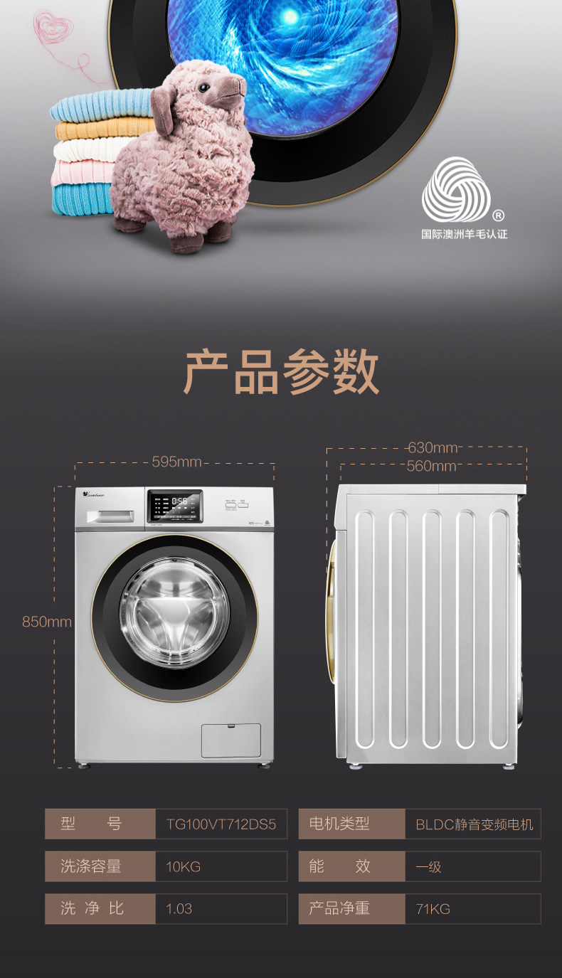 máy giặt cửa trước Little Swan 10 kg KG tự động chuyển đổi tần số máy giặt trống thông minh câm thông minh TG100VT712DS5 - May giặt máy giặt có sấy May giặt