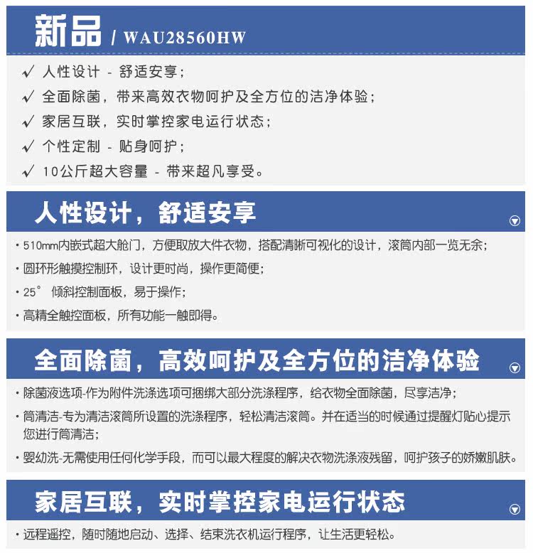 máy giặt giá rẻ Máy giặt trống chuyển đổi tần số gia dụng tự động Bosch Bosch XQG100-WAU28560HW 10kg sản phẩm mới các loại máy giặt May giặt