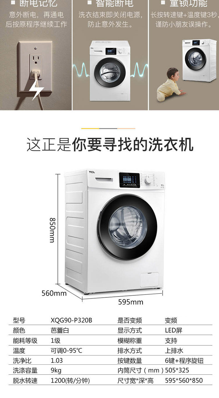 máy giặt lg fv1450s2b Dàn TCL XQG90-P320B Trống chuyển đổi tần số trắng trống máy giặt tự động siêu mỏng hạng nhất tiết kiệm năng lượng - May giặt máy giặt toshiba 9kg inverter điện máy xanh May giặt