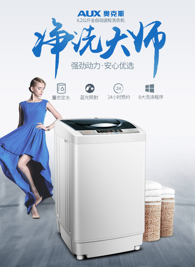 máy giặt lông ngang giá rẻ Máy giặt nhỏ tự động AUX / Aux XQB62-A1518L 6.2 kg - May giặt máy giặt không xả nước May giặt