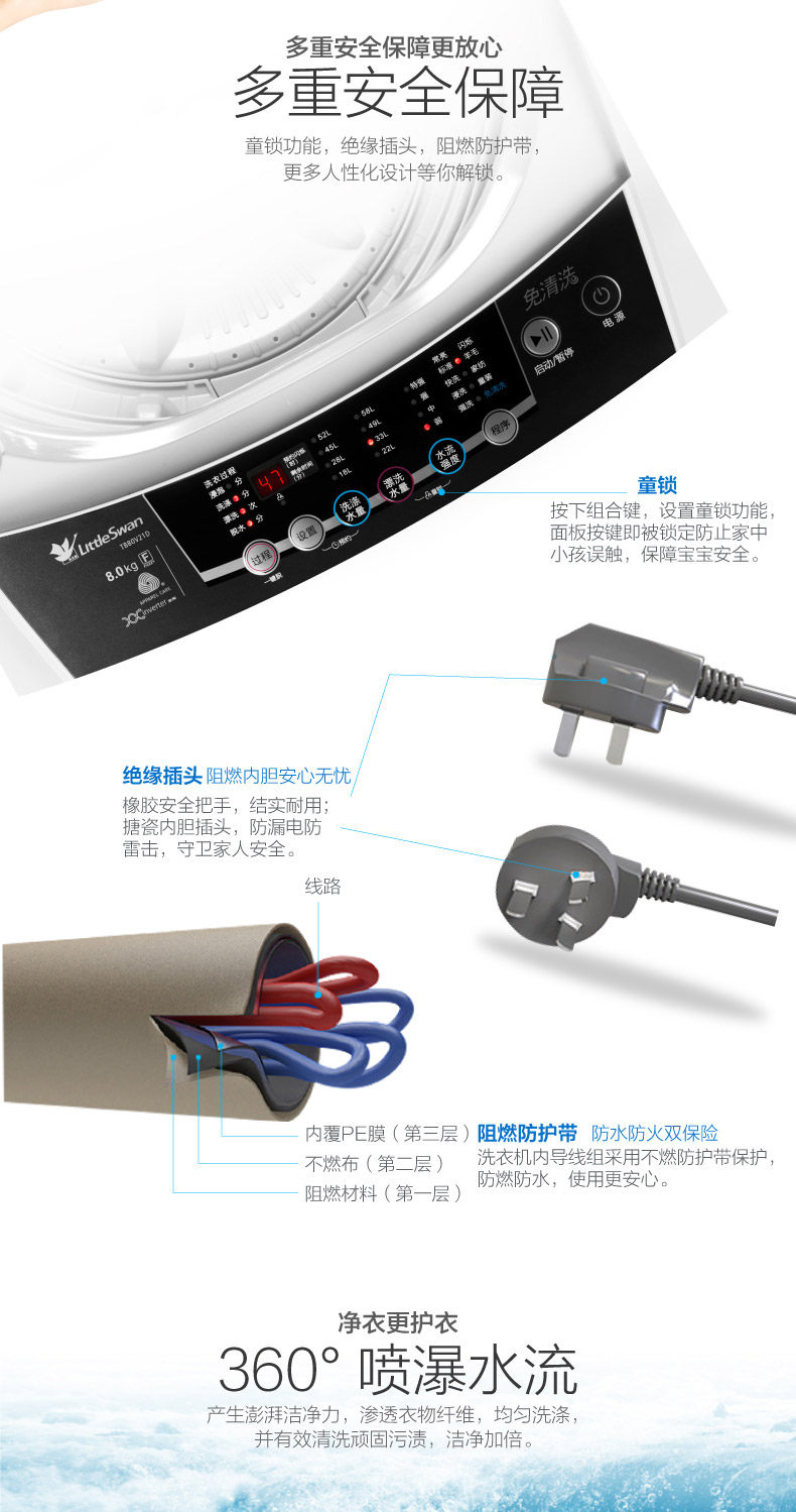 máy giặt panasonic 9kg Máy giặt Little Swan TB80V21D tự động 8 kg kg chuyển đổi tần số hộ gia đình nhỏ bánh xe sóng chính thức - May giặt máy giặt 10kg May giặt
