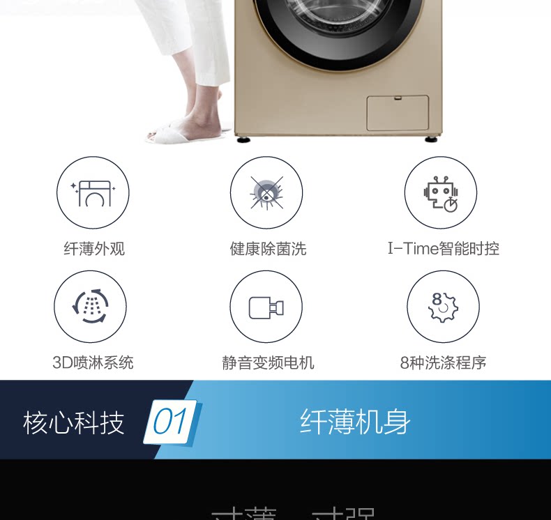 máy giặt samsung 10kg [Siêu mỏng] Little Swan 8 kg KG tự động chuyển đổi tần số trống máy giặt gia đình TG80VT712DG5 - May giặt máy giặt samsung 8kg May giặt