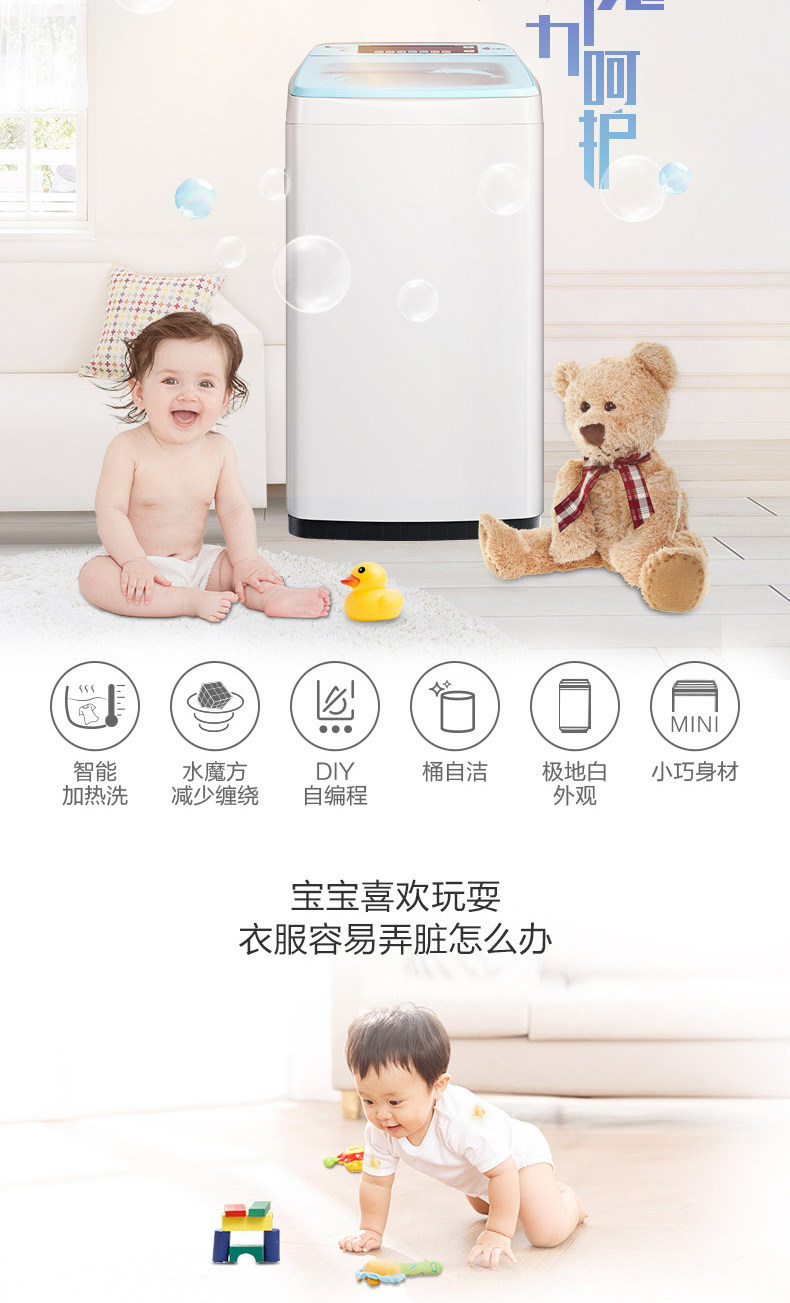 máy giặt sấy khô Little Swan 3kg KG Baby Mini Máy giặt nhỏ tự động dành cho gia đình nhỏ TB30VQ80HCL - May giặt máy giặt panasonic 7kg May giặt