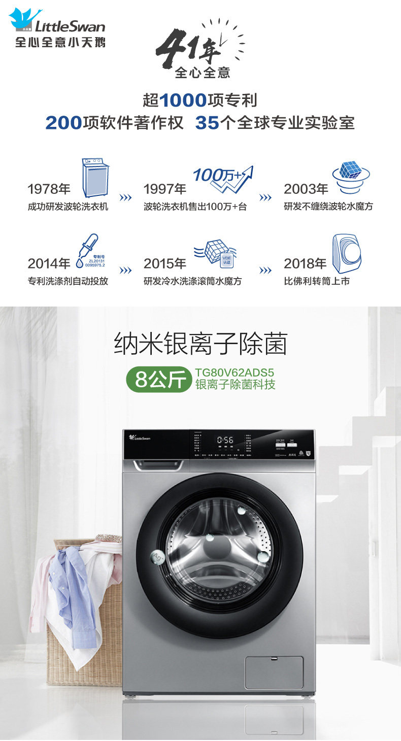 máy giặt toshiba Little Swan 8 kg KG tự động chuyển đổi tần số trống máy giặt gia đình TG80V62ADS5 - May giặt giá máy giặt panasonic 10kg May giặt