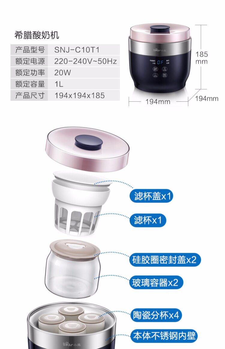 máy làm sữa chua bán chạy nhất Bear / Cubs SNJ-C10T1 hộ gia đình tự động 4 cốc sữa chua bằng gốm máy làm sữa chua và caramen Sản xuất sữa chua