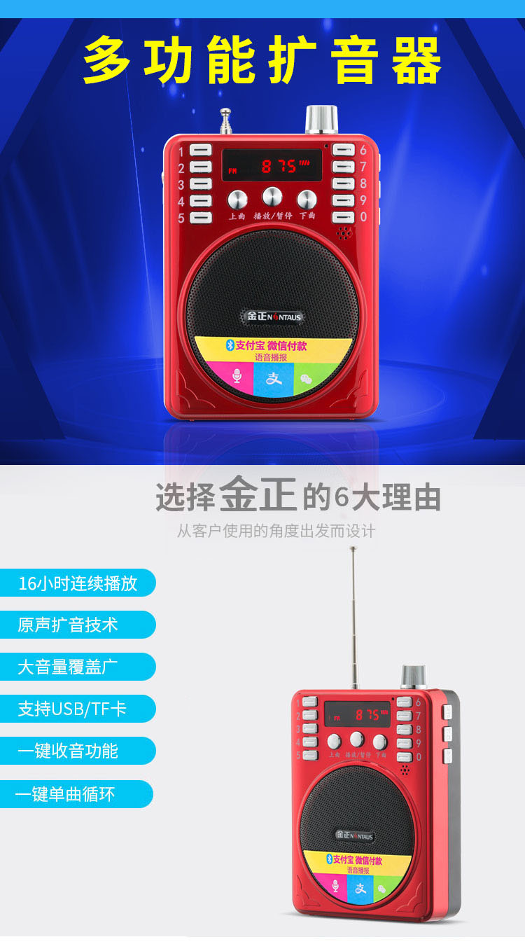 máy nghe nhạc cao cấp Kim Jung 207BT Bluetooth Radio Mini Loa Thẻ Giáo viên Bộ khuếch đại Máy nghe nhạc cầm tay Walkman - Máy nghe nhạc mp3 máy nghe nhạc giá rẻ dưới 100k Máy nghe nhạc mp3