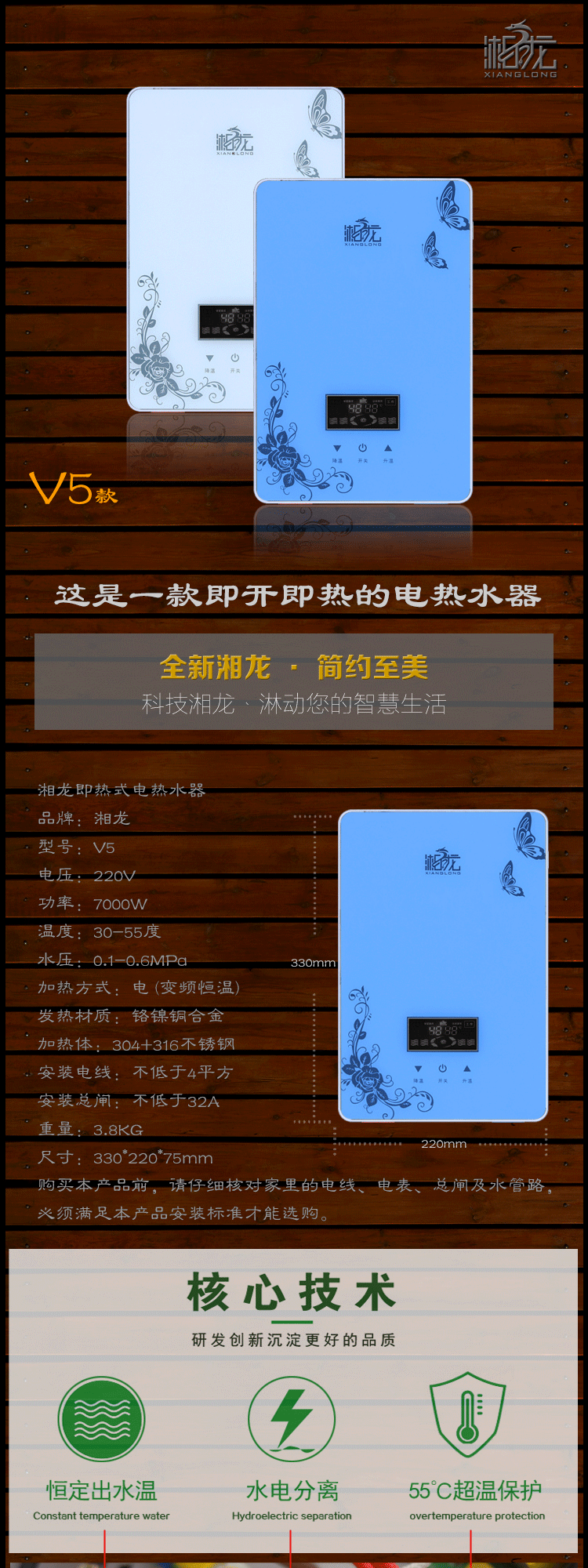 may nuoc nong solahart Máy nước nóng điện tức thời Xianglong V5 phần 7kw tiết kiệm năng lượng 8kw lưu trữ nước miễn phí chuyển đổi tần số nhiệt nhà bếp - Máy đun nước máy nước nóng gián tiếp Máy đun nước