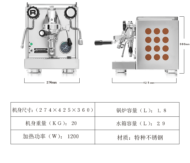 máy pha cafe viên nén Máy pha cà phê bán tự động Rocket / Rocket APPARTAMENTO đầu đơn máy cà phê Máy pha cà phê