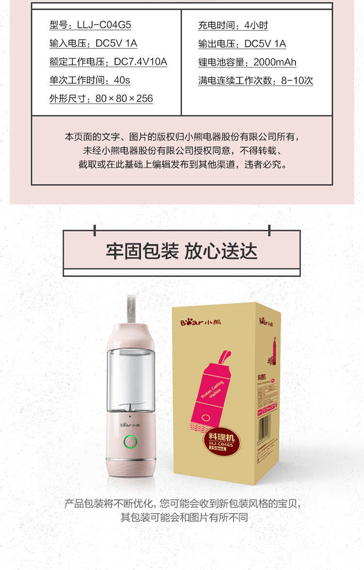 máy xay sinh tố vitamix Bear / Cubs LLJ-C04G5 Portable Cup Mini hộ gia đình đập nước ép trái cây điện Máy ép trái cây di động - Máy ép trái cây máy ép hoa quả bằng tay Máy ép trái cây