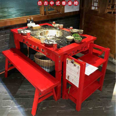 Nội thất sân vườn đơn giản, một bàn, sáu ghế, ghế ăn, bàn gỗ, bàn tròn đá cẩm thạch, bàn lẩu gỗ đặc, bàn chìm công nghiệp - FnB Furniture FnB Furniture