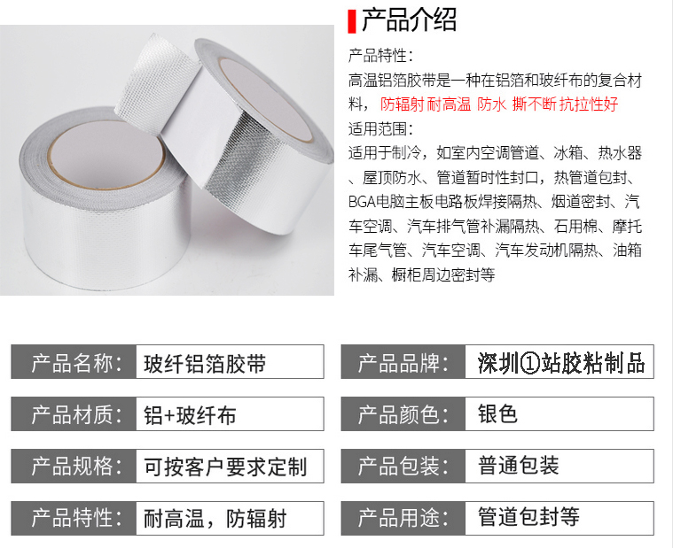 Sợi thủy tinh vải nhôm lá băng dày chống cháy nhiệt độ cao không thấm nước chống thấm nước lá nhôm keo giấy mui xe giấy thiếc - Băng keo Băng keo