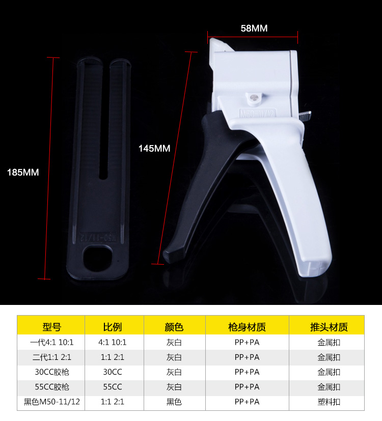 Súng bắn keo thủ công 50mlAB1: 11: 2 thành phần kép 10: 1 kim loại bằng tay AB