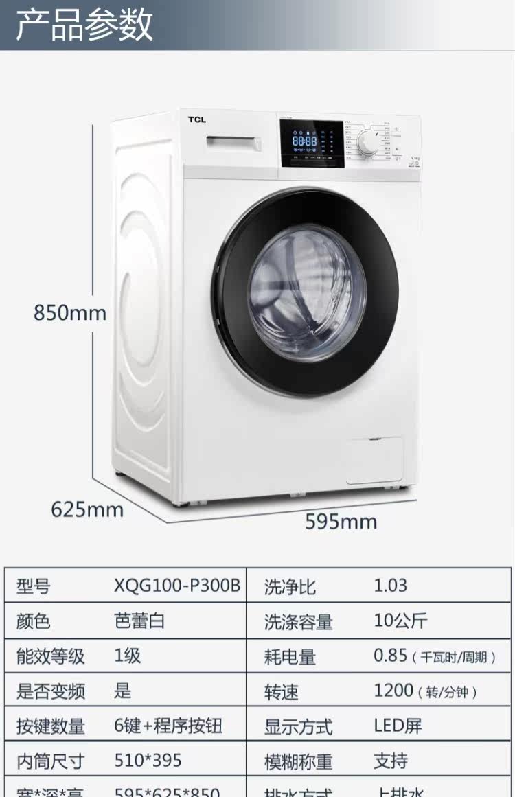 TCL XQG100-P300B công suất lớn chuyển đổi tần số 10 kg kg trống máy giặt tự động máy giặt lg 9kg fc1409s4w May giặt
