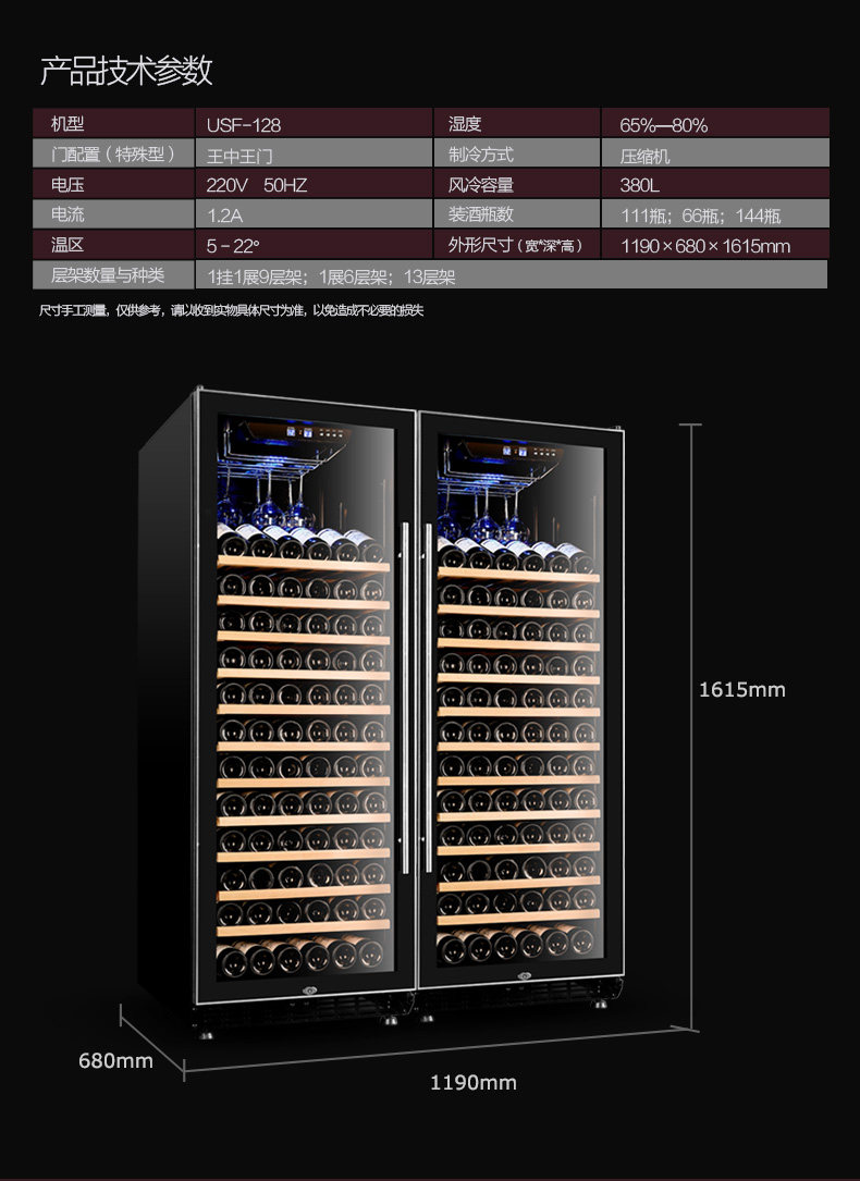 tủ bày rượu Fasato / Fansadi USF128 cửa lạnh rượu vang tủ lạnh nhiệt tủ rượu gia đình xì gà trưng bày tủ đông kệ trưng bày rượu Tủ rượu vang